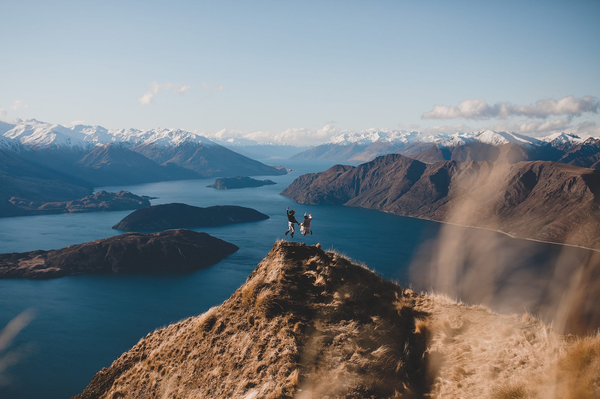 Queenstown's landscapes provide Williams Photography with extraordinary versatility. Summer delivers extended golden hour light perfect for dramatic mountain portraits. Autumn brings those famous gold and red trees framing lakeside ceremonies. Winter transforms everything into snowy perfection with crisp, clear light. Spring offers fresh green valleys against snow-capped peaks.
